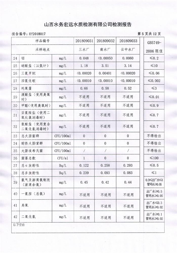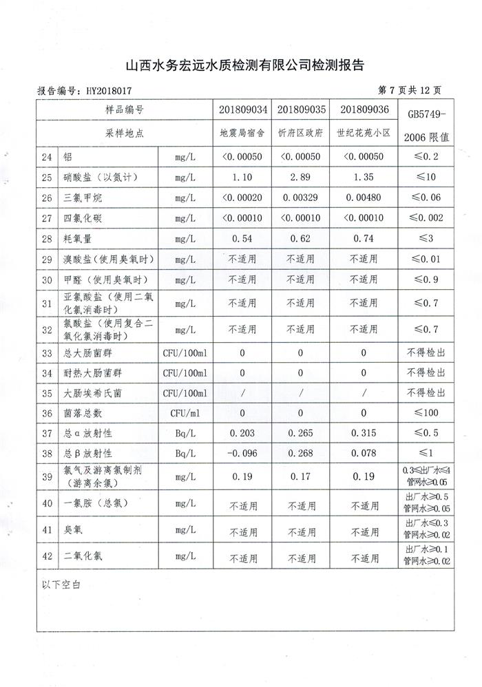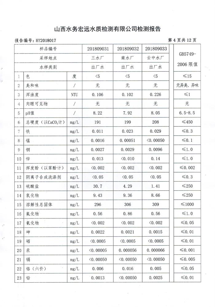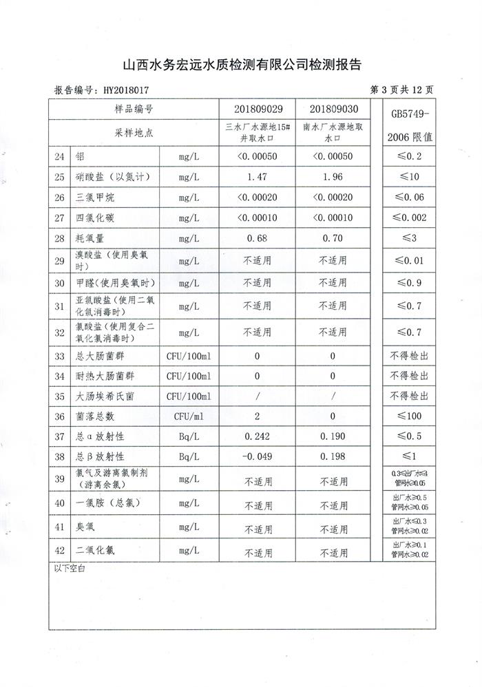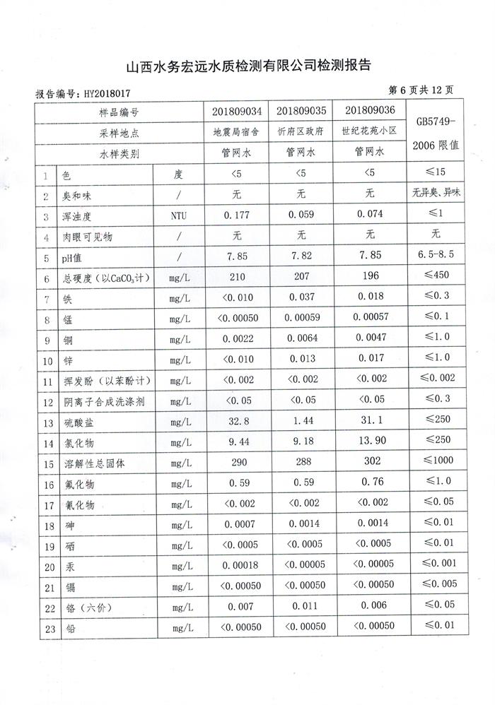 忻州城區(qū)公共供水水源水、出廠水、管網水、管網末梢水2018年9月份水質信息公示