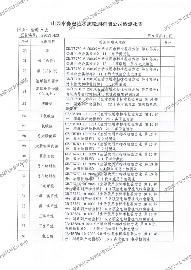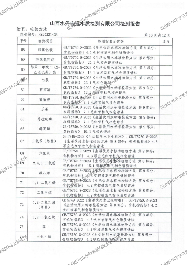 2024年忻州城區(qū)公共供水南水廠、三水廠、云中水廠出廠水97項水質(zhì)全分析